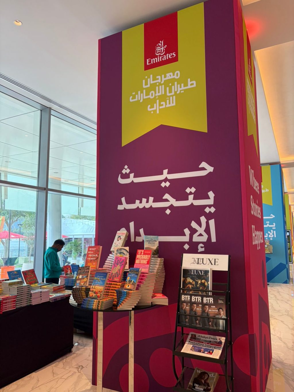 A bookstore display Emirates Literature Festival at InterContinental Dubai Festival city